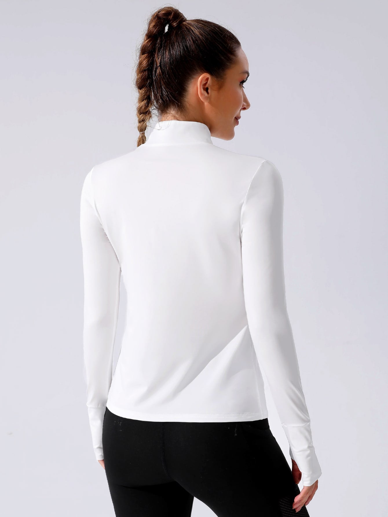 Women's White Half Zip Thumb Holes -